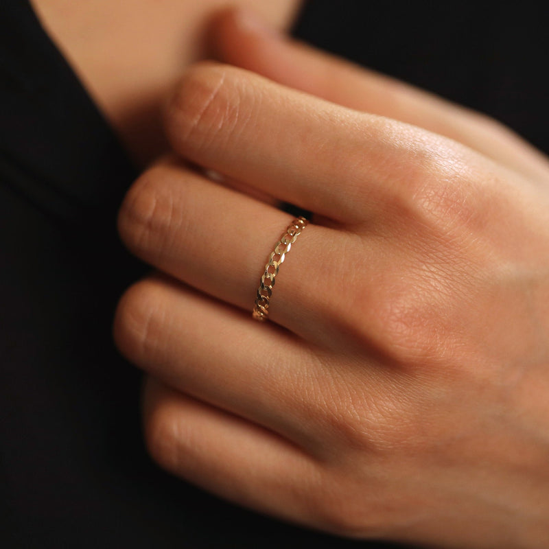 Beautifully handcrafted Cuban link 14k solid gold ring, available in yellow, white, and rose gold. Uber chic, modern and timeless, wear it by itself or stacked, a true fine jewelry statement ring.
