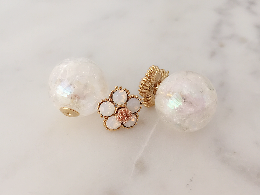Flower & Cracked Crystal Double Studs