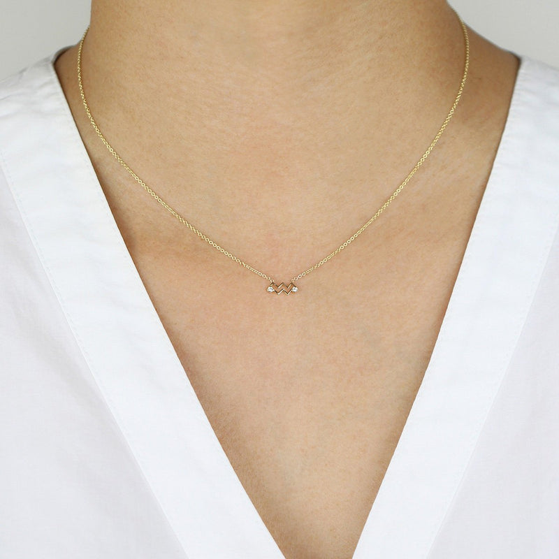 Aquarius Zodiac Sign Diamond Necklace